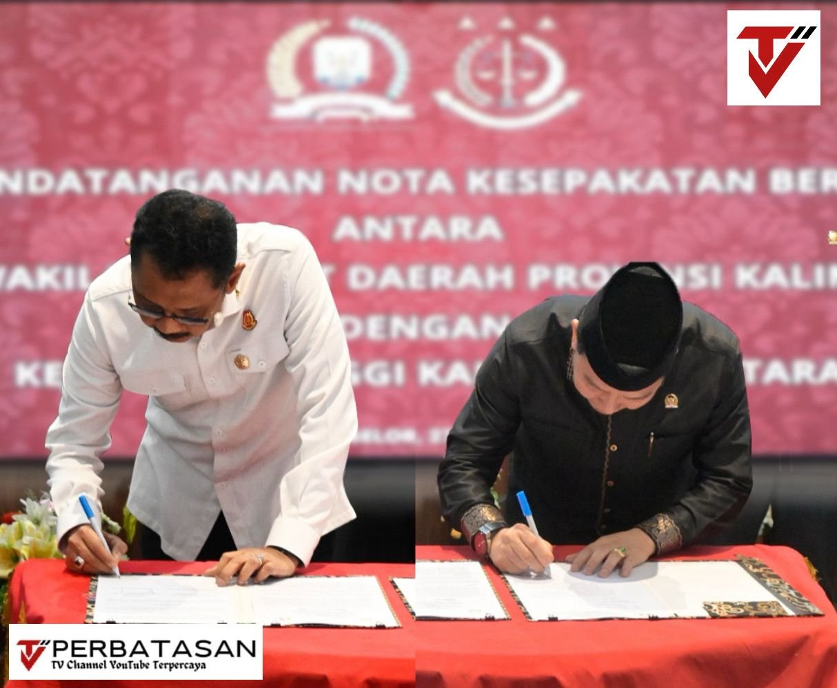 NEWS PERBATASAN, Tanjung Selor – Kepala Kejaksaan Tinggi Kalimantan Utara, Yudi Indra Gunawan, S.H., M.H., bersama Ketua DPRD Provinsi Kaltara H. Achmad Djufrie, SE., MM menandatangani Nota Kesepahaman Bersama (MoU) dalam Bidang Perdata dan Tata Usaha Negara. Kerjasama ini ditekan pada Selasa (27/1) di Aula Gedung DPRD Provinsi Kaltara.