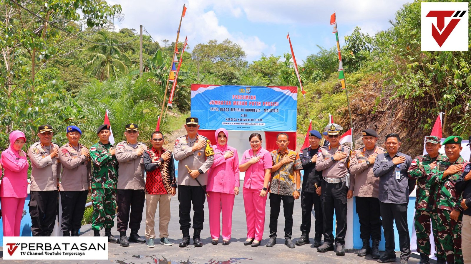 NEWS PERBATASAN, Nunukan – Kapolda Kalimantan Utara, Irjen Pol. Djati Wiyoto Abadhy, S.I.K., meresmikan Jembatan Merah Putih Presisi yang terletak di Desa Sungai Limau, Kecamatan Sebatik Tengah, Kabupaten Nunukan, Sabtu (14/03/2026). Jembatan ini menjadi sangat strategis karena berdiri tepat di garis tapal batas antara Republik Indonesia dan Malaysia.