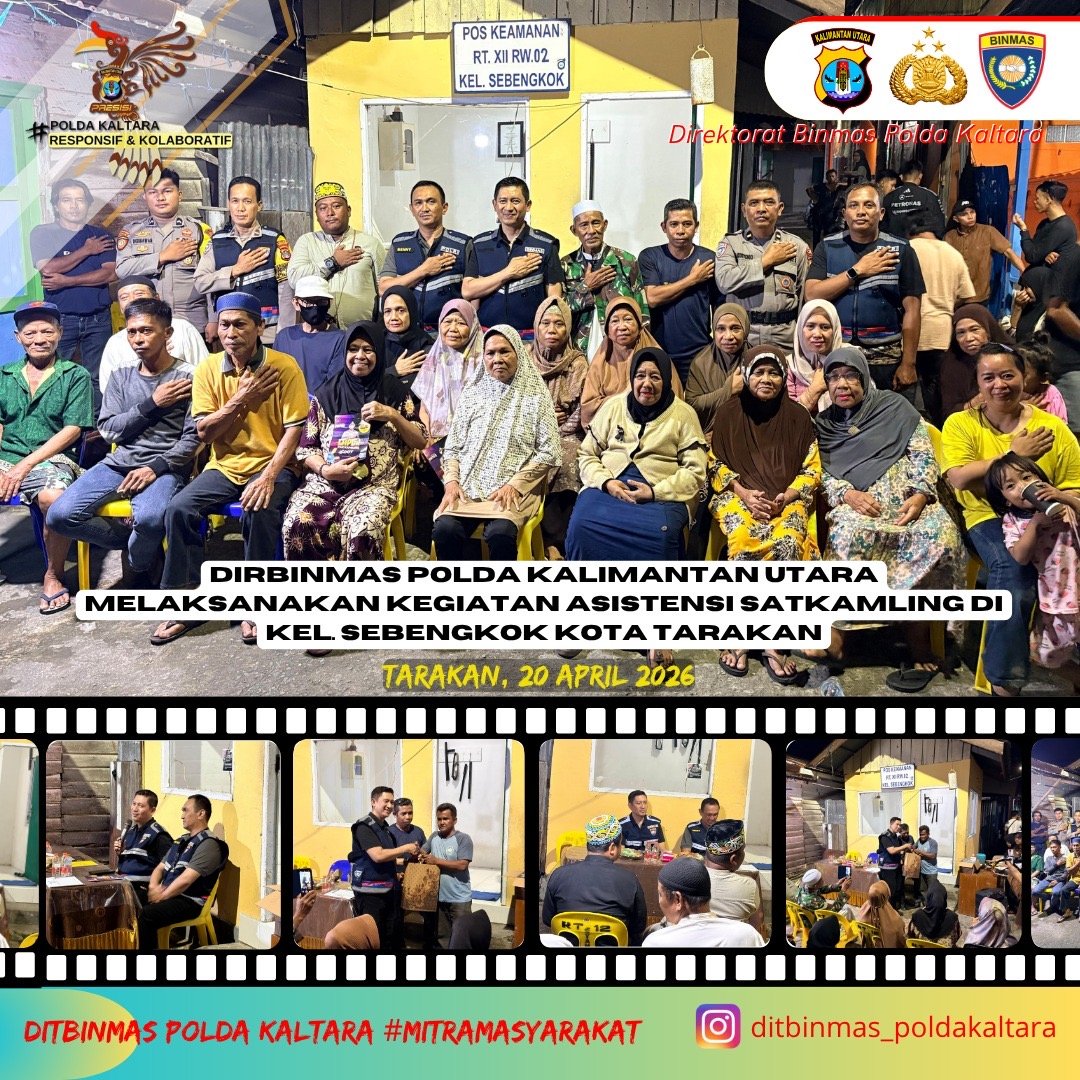 NEWS PERBATASAN, Tarakan – Guna memperkuat sistem keamanan lingkungan secara mandiri, Direktorat Binmas (Ditbinmas) Polda Kalimantan Utara melaksanakan kegiatan Asistensi Revitalisasi Satkamling di RT 12, Kelurahan Sebengkok, Kota Tarakan, pada Senin malam (20/4/2026).