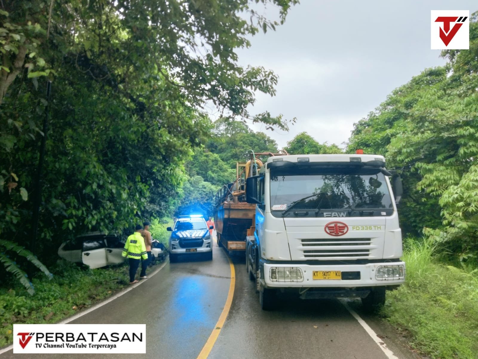 NEWS PERBATASAN, BULUNGAN – Kecelakaan lalu lintas (Laka Lantas) terjadi di Jalan Poros Desa Sungai Urang, Kecamatan Tanjung Palas pada Sabtu, (7/2/2026) sekira pukul 13.10 WITA. Kejadian laka lantas ini antara kendaraan Faw Triler Warna putih Nomor Polisi KT 9017 KU dengan kendaraan Roda Empat (R4) jenis Xenia Warna Putih Nomor Polisi KU 1477 SB.
